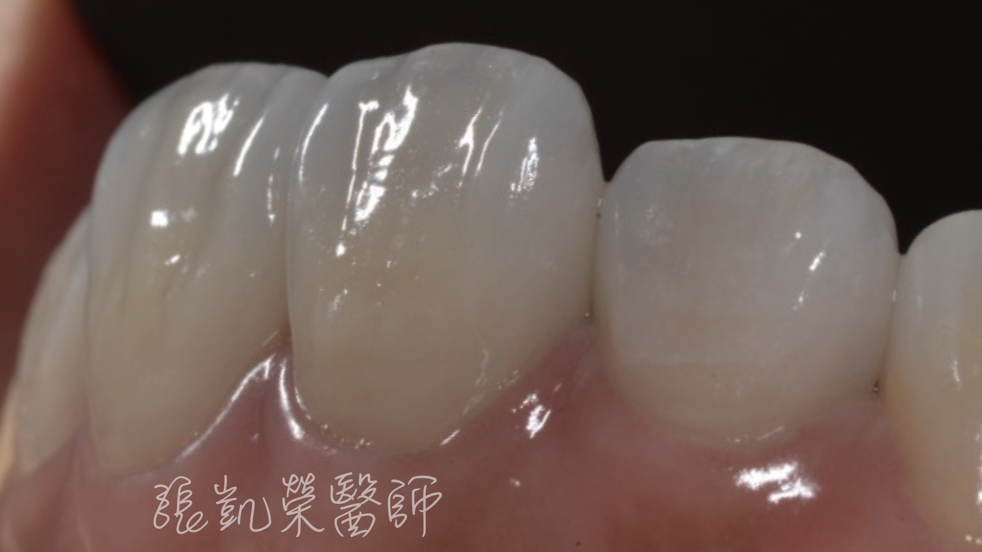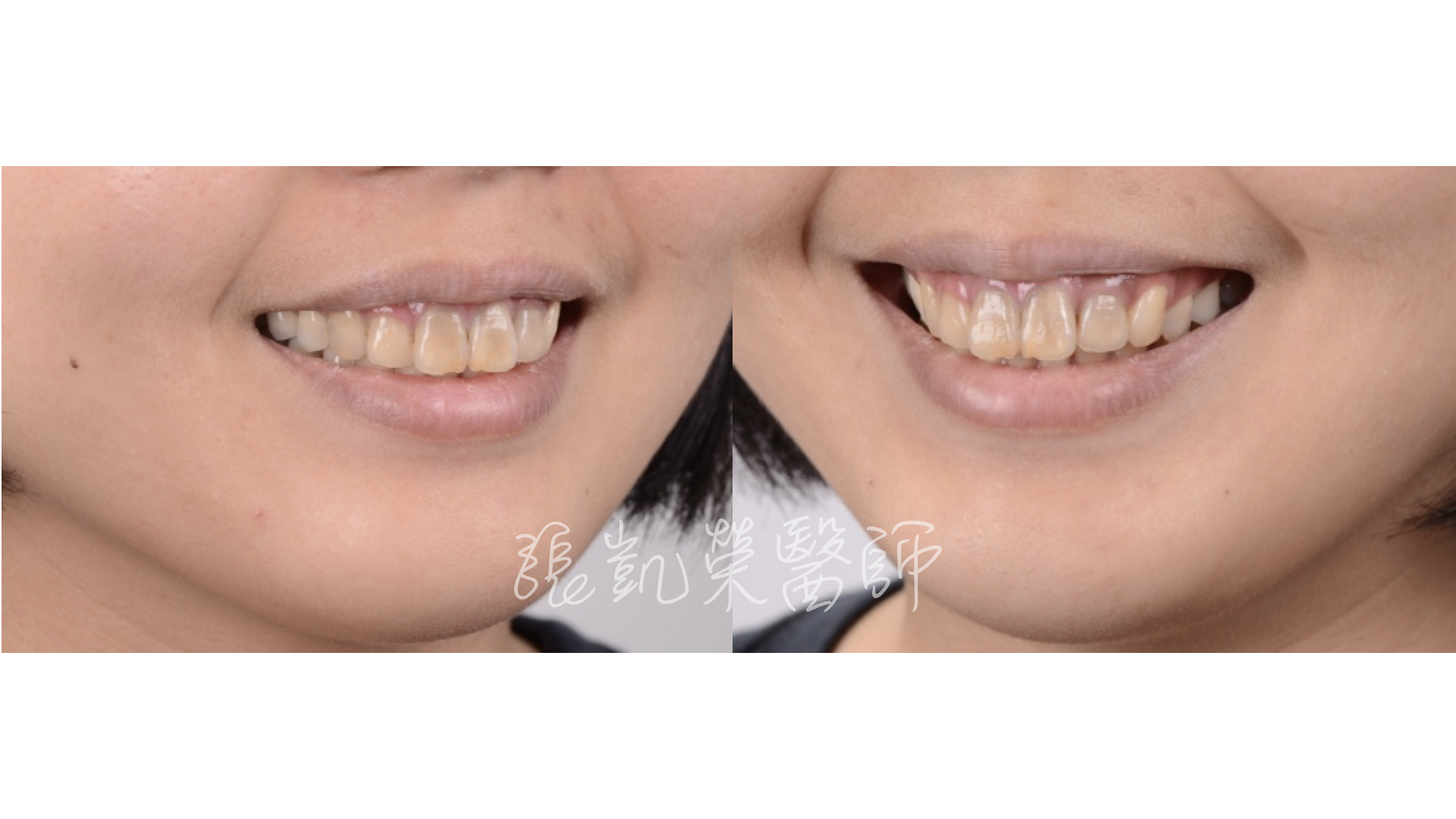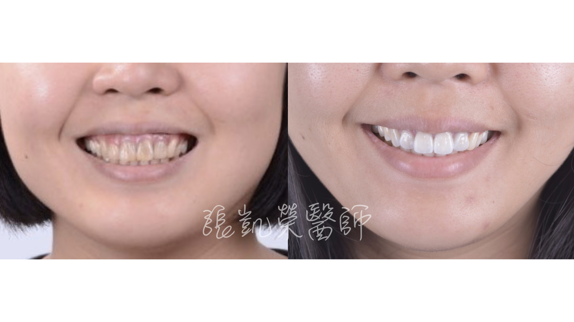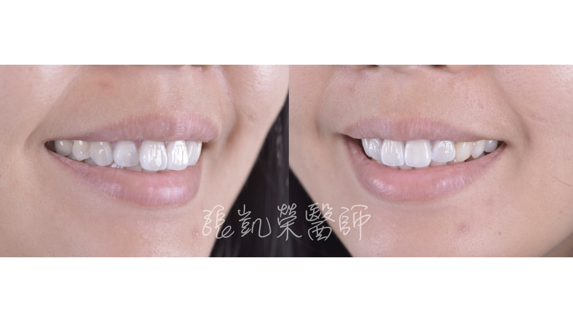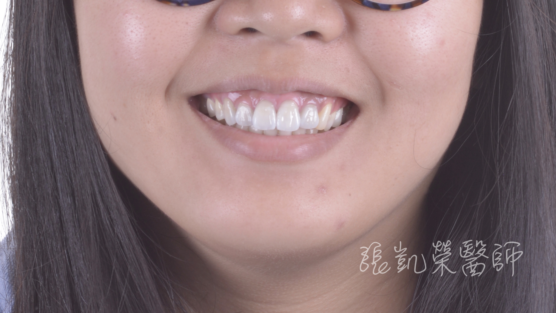 W小姐覺得從小就牙齒黃黃的,本來是預計要做美白。 榮醫師檢查後,發現他牙齒黃黃的是因為小時候牙齒根管治療,牙齒顏色變深,而且根管治療過程牙齒齒質也受到傷害,所以榮醫師就建議針對牙齒變黃的部分進行全瓷冠治療,一來可以保護牙齒,二來也可以改善牙齒顏色美觀,讓W小姐可以不用再為這個多年的黃板牙煩惱了~~