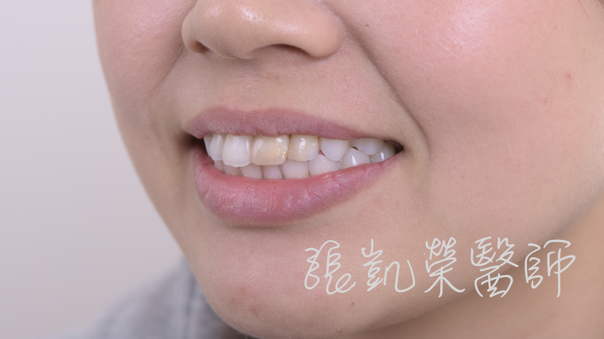 陳小姐多年前因為跌倒,門牙撞斷了,當時先用樹脂補起來,現在牙齒顏色變了,都不敢開懷笑..... 今年要結婚,準備拍婚紗,希望有個美美的笑容。 榮醫師檢查完後,牙齒條件還完整,適合直接做貼片修復,但是原本牙齒對稱性不夠,而且長短不一,經歷過幾次型態顏色溝通後,將資訊完整轉移給榮醫師的好隊友---賴宏昇技師,一起給陳小姐一個美美的笑容,讓他可以開心做六月新娘~~