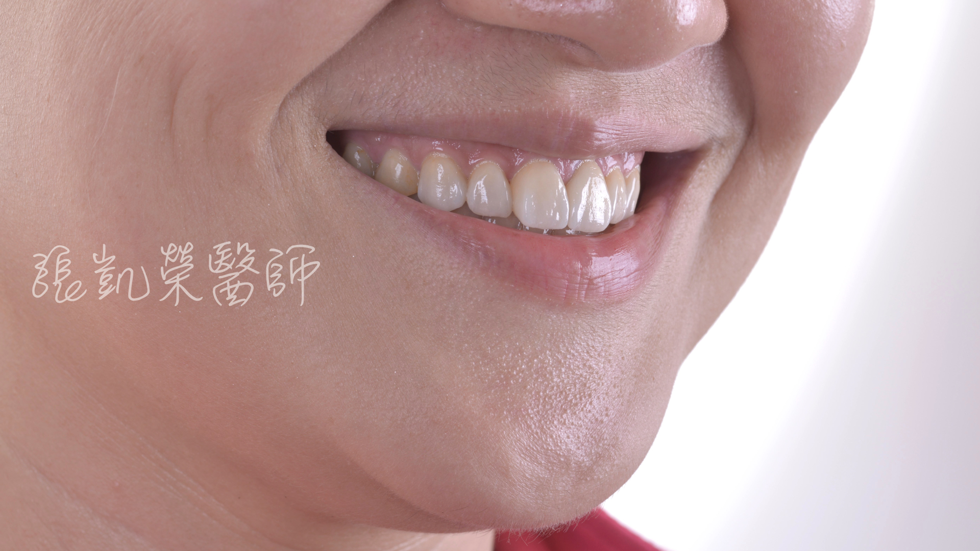 而L小姐還特別描述,他的貼片不要那種很白很白的,要跟其他牙齒顏色一至協調,經過多次討論後,榮醫師幫他決定貼片是比其他牙齒再白一色階就好,一來這樣可以讓牙齒稍微亮白些,但不至於跟其他牙齒造成顏色上的落差。