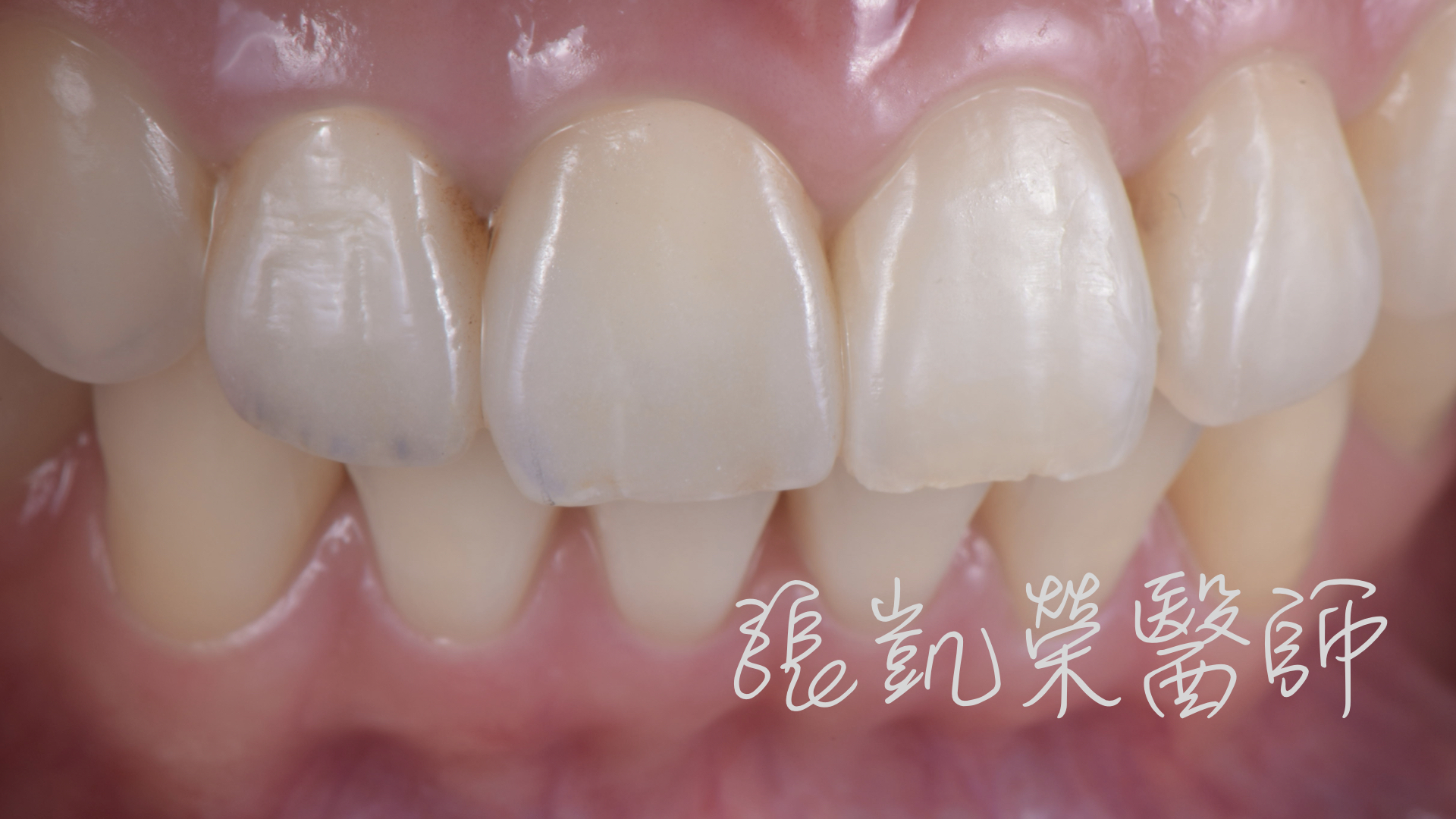 L小姐矯正後,雖然把牙齒排列整齊,但是門牙的臨時假牙,讓他不敢露齒微笑;榮醫師診治後,發現L小姐只需重新更換全瓷冠,再加上全口美白,就可以有燦爛自信的笑容。