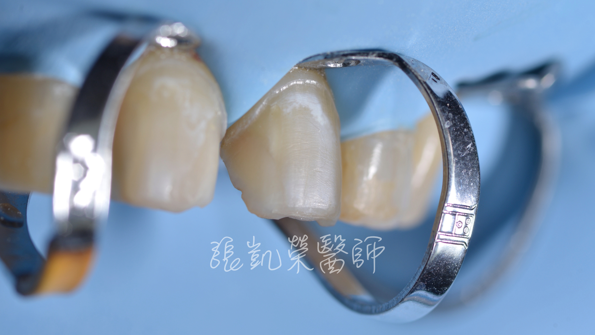 T小姐來到榮醫師診間,因為以前工作壓力大,有磨牙的習慣,現在已經戒除這習慣,不過牙齒短短平平的,笑起來感覺很老,想要有年輕人的微笑曲線,但是又不想把整顆牙齒磨調做假牙,不知道有沒有解決方式呢? 榮醫師的經驗中,磨牙對於貼片的風險蠻高的,所以先用樹脂將型態調整,經過四個月的測試,就如T小姐說的,已經沒有磨牙的狀況,再將牙齒少量休磨,製作門牙兩顆全瓷貼片,讓T小姐的笑容,再次年輕~~ 磨牙、牙齒短 樹脂測試 貼片完成