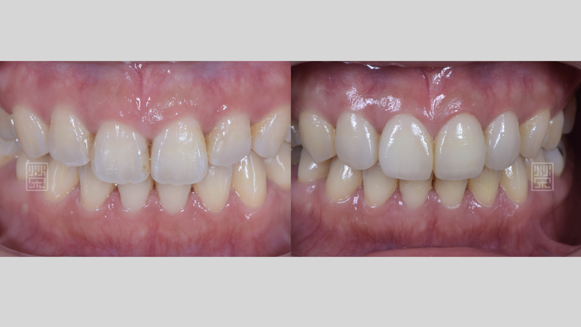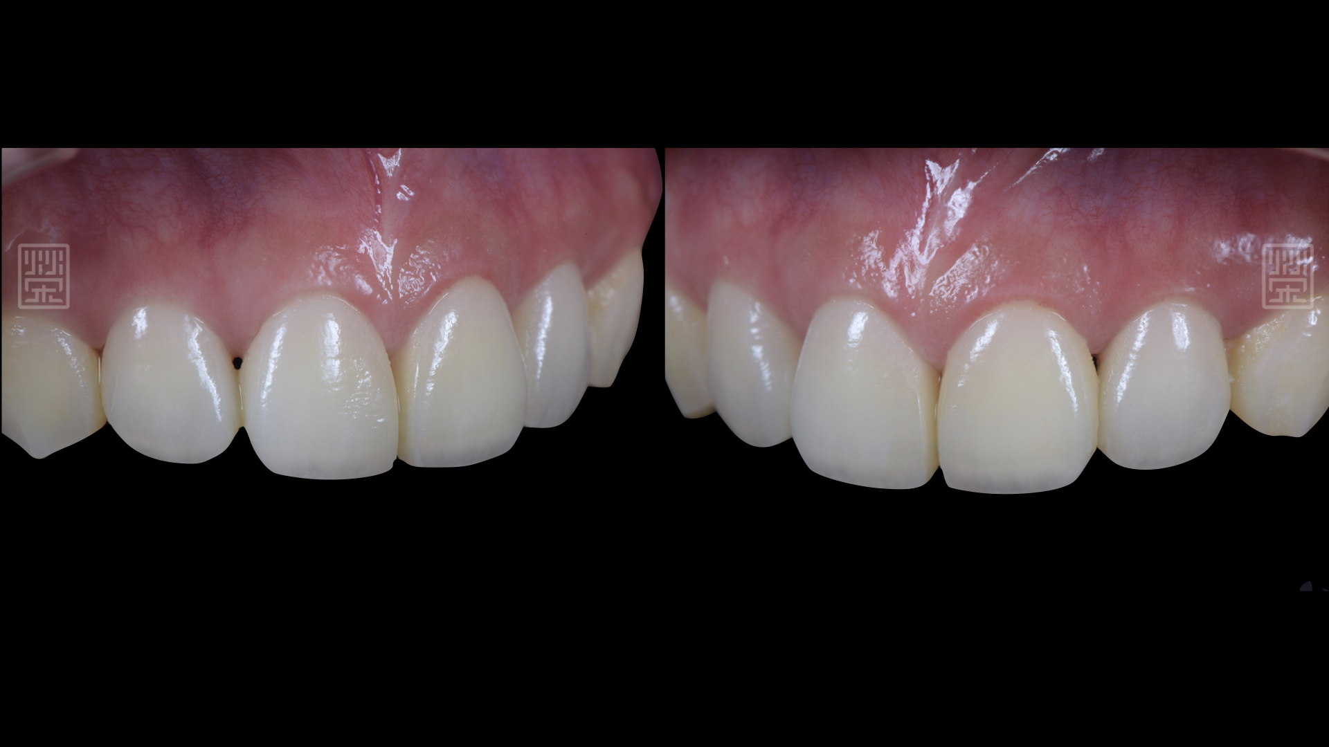 姚小姐覺得門牙太長,側門牙太短,覺得像小老鼠一樣,一直覺得很困擾,先去矯正醫師諮詢,但是嘴形、豐隆度很好,所以請患者到榮醫師門診諮詢。 經檢查後,牙齒很健康,只需要做一些牙齦整形術,之後再加上貼片就可以改善門牙長度的問題。 門牙太長 長度模擬溝通 牙齦整形術