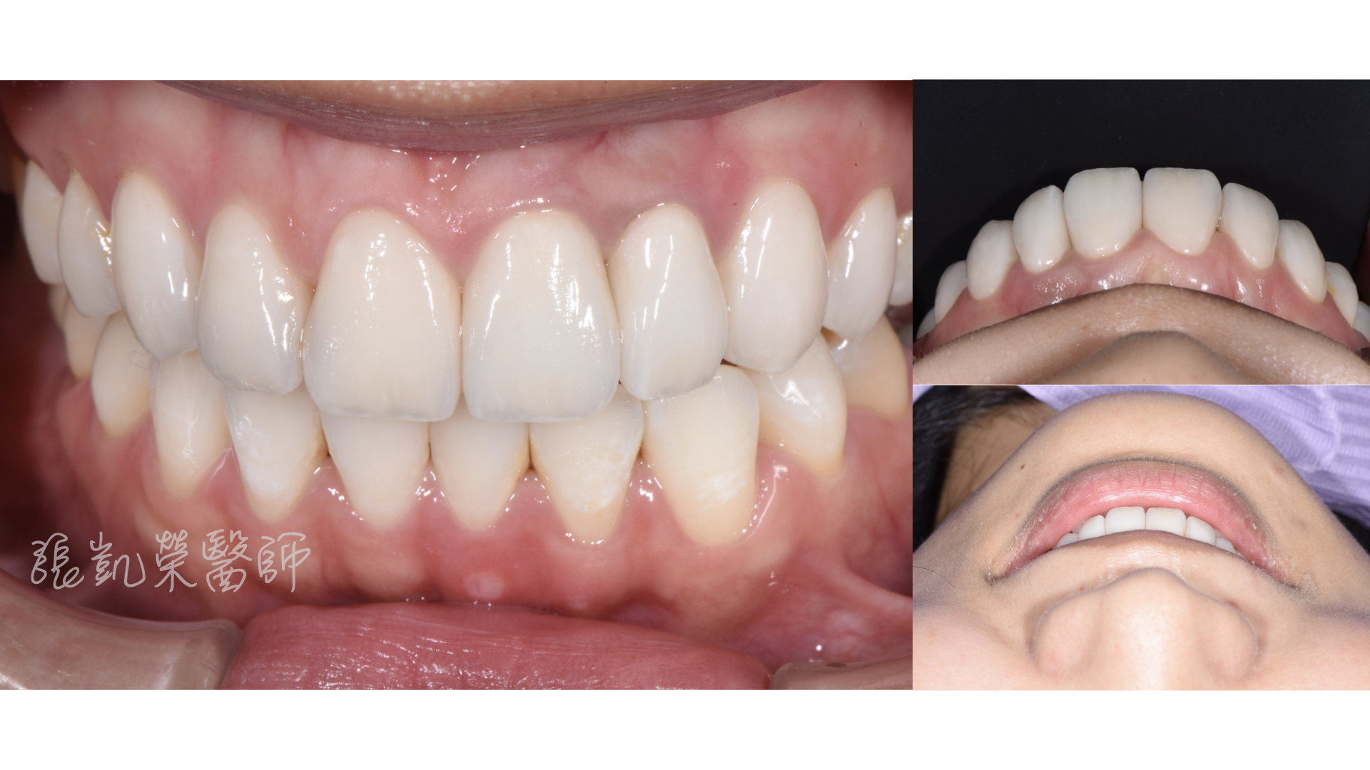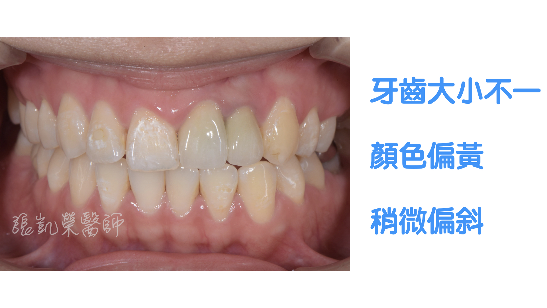李小姐初次來榮醫師門診時,覺得牙齒偏黃,舊假牙不好看。 榮醫師診斷後,除了上述狀況外,牙齒的水平與中線有點偏斜,主要的是兩側牙齒的位置不太對稱,有一些前後的落差。 因為齒列排整的落差,需要先溝通,確認理想位置,所以榮醫師就先做數位微笑模擬(Digital Smile Design),跟李小姐確認長度、位置都滿意;再藉由美白、貼片、全瓷冠,讓李小姐可以自信開心地開懷大笑。 網站照片.004