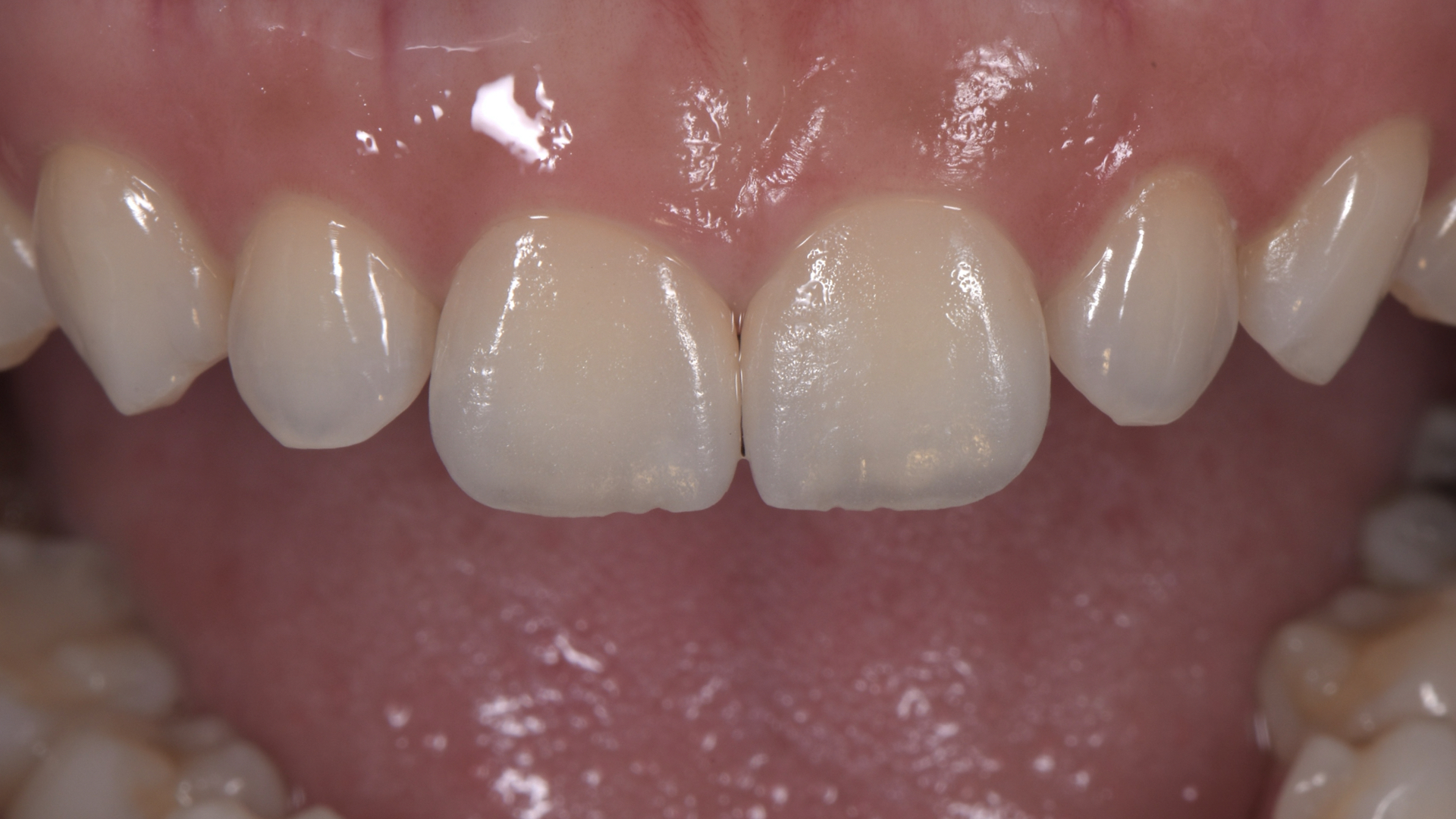 榮醫師,我的門牙有牙縫,我想要把他關起來,能夠怎麼處理呢? 經過檢查,榮醫師發現,原本林小姐的牙齒比較小,填不滿整個牙弓,再加上牙齒有點內縮,所以榮醫師建議她做顯微貼片,一來修復牙齒縫的問題,再來將牙齒豐隆度增加一些,這樣對牙齒的傷害很小,術後都不會有敏感的症狀。 治療結果林小姐很滿意,榮醫師對於貼片細節的呈現也非常的滿意與自豪喔~~ 門牙中間有縫 微創修磨 顯微貼片